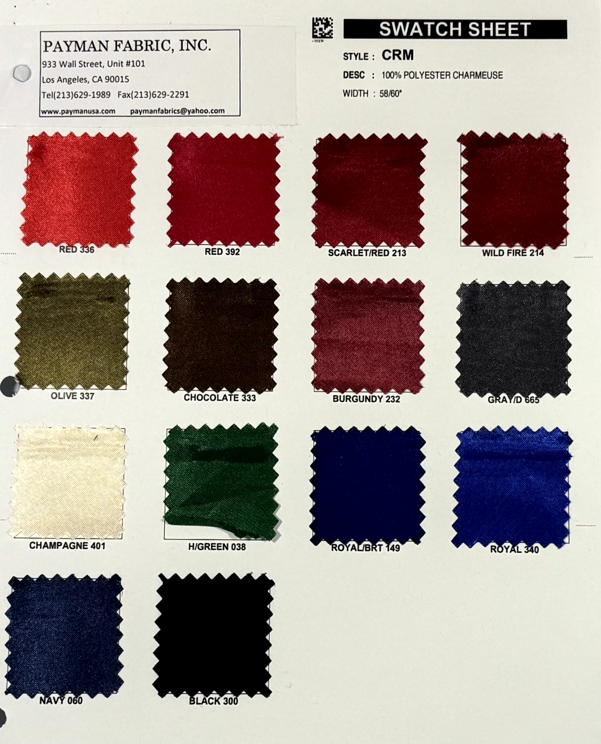 100% POLYESTER CHARMEUSE