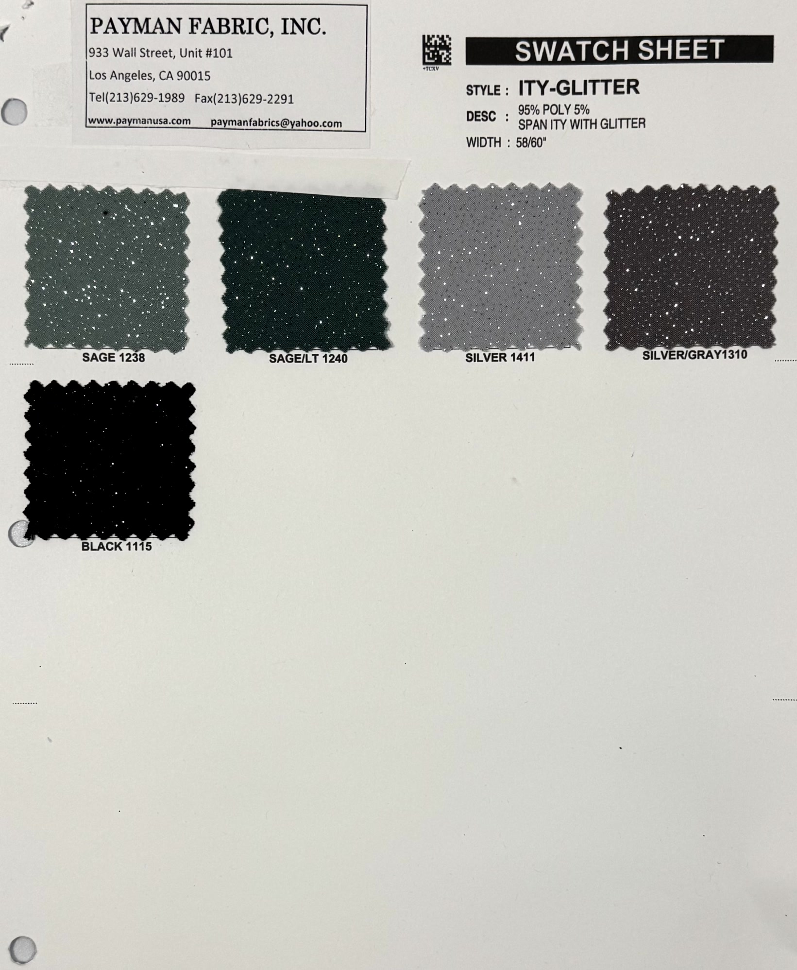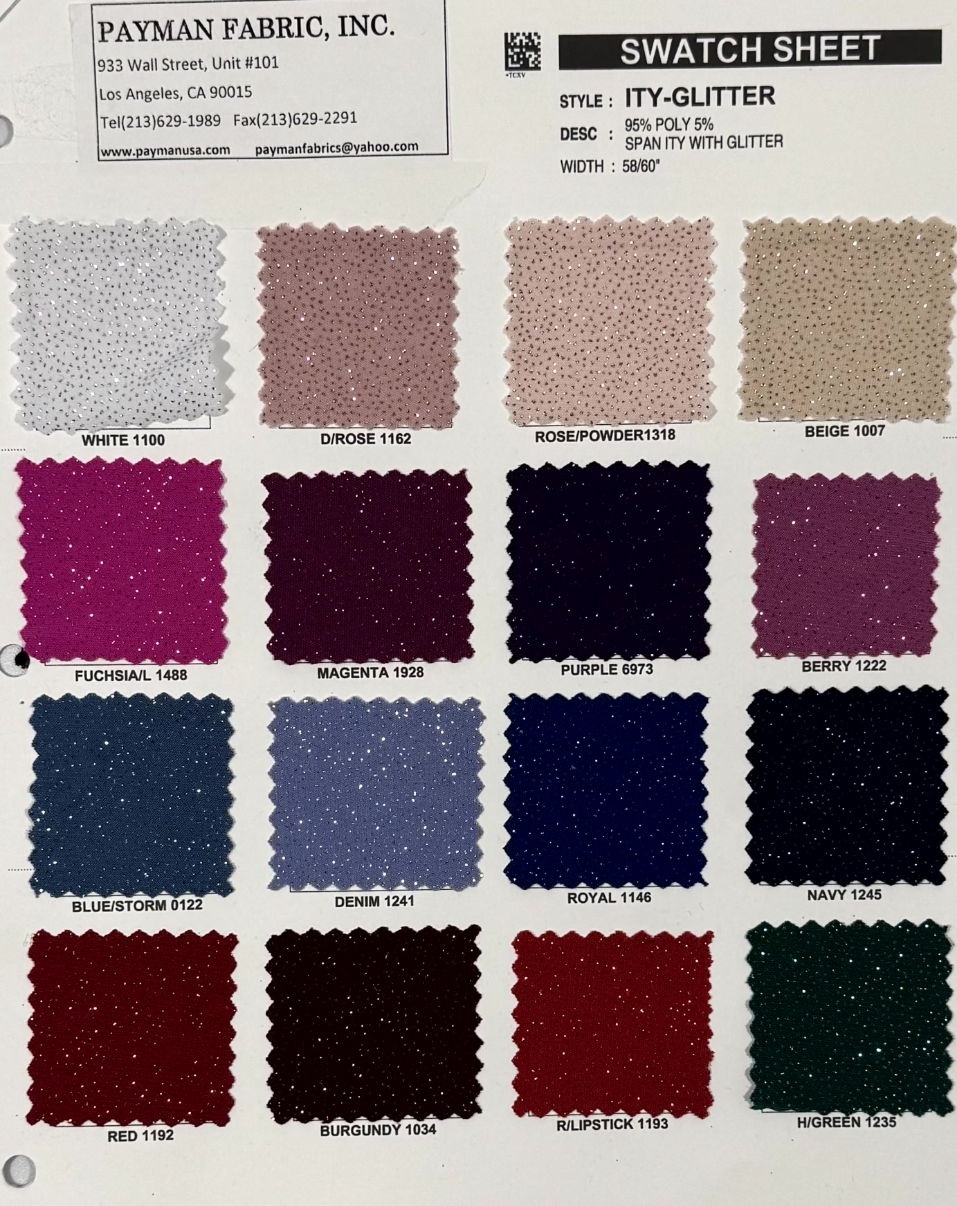 95% Poly 5% Span ITY with Glitter