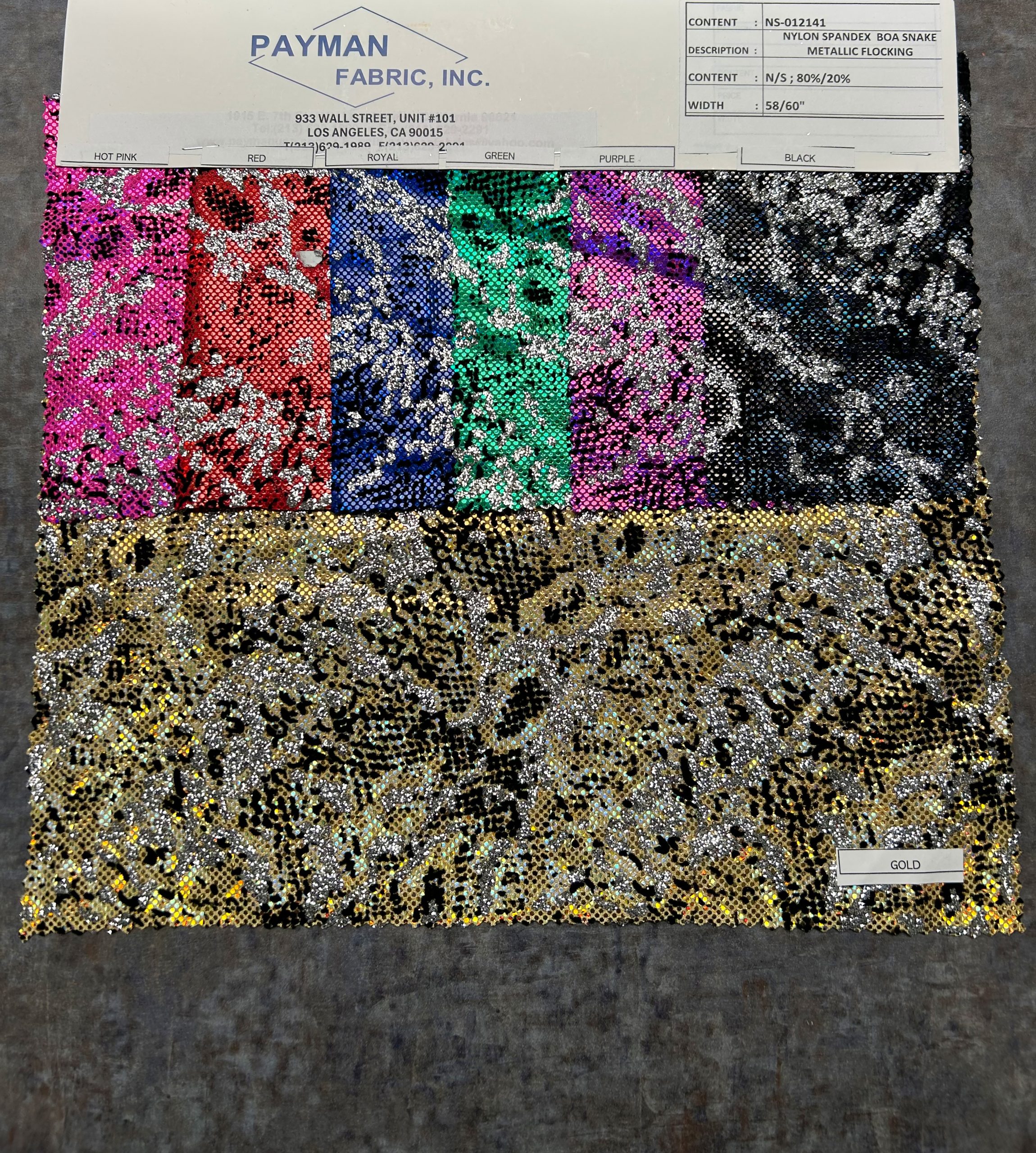 - NYLON SPANDEX BOA SNAKE METALLIC FLOCKING