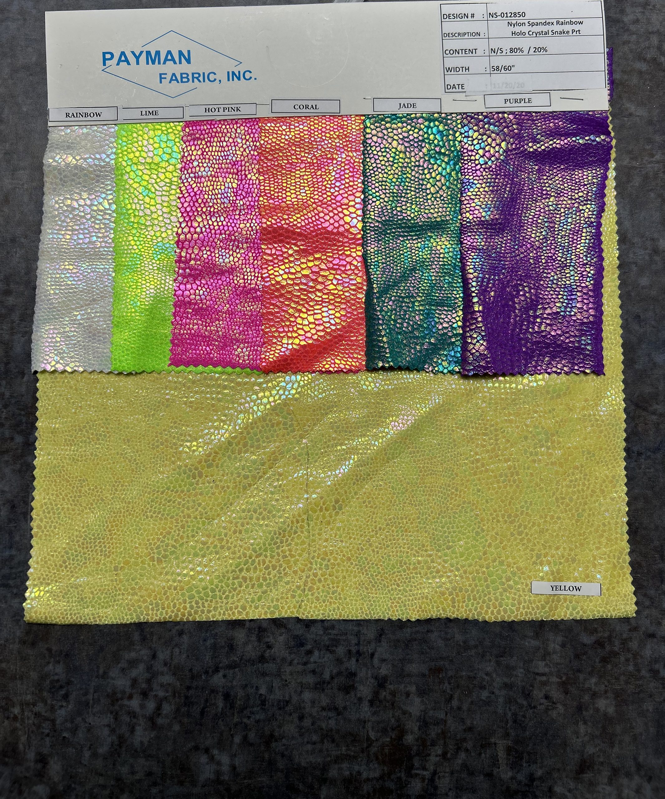 - Nylon Spandex Rainbow Holo Crystal Snake Prt