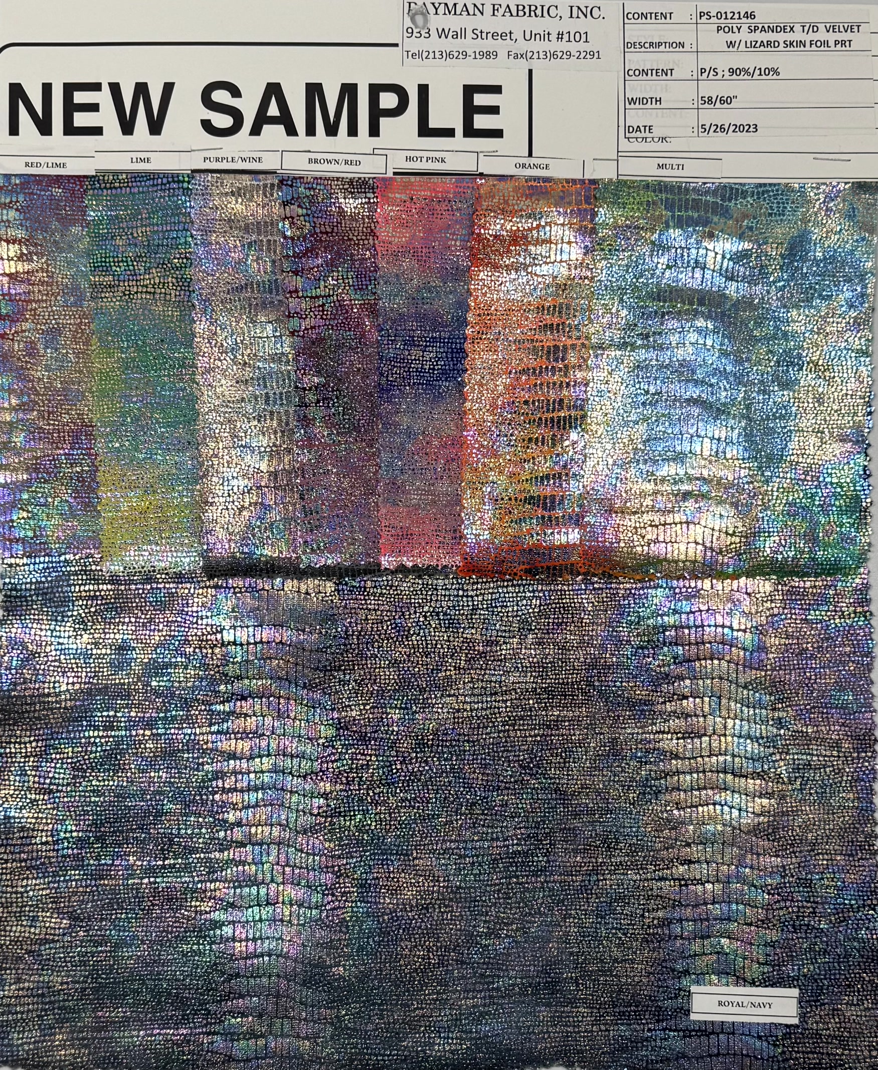 - POLY SPANDEX T/D VELVET W/ LIZARD SKIN FOIL PRT